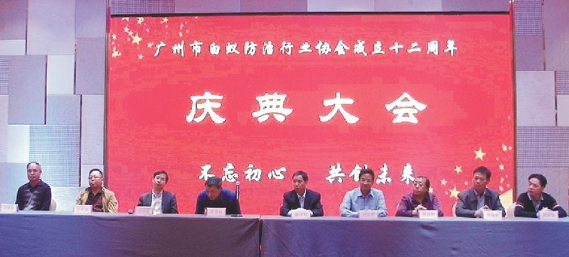 2019年3月12日下午,廣州市白蟻防治行業協會成立十二周年慶典大會,在同和云凱酒店勝利召開。我司法人陳享環兼(廣州市白蟻防治行業協會會長)主持會議,并發表賀詞。